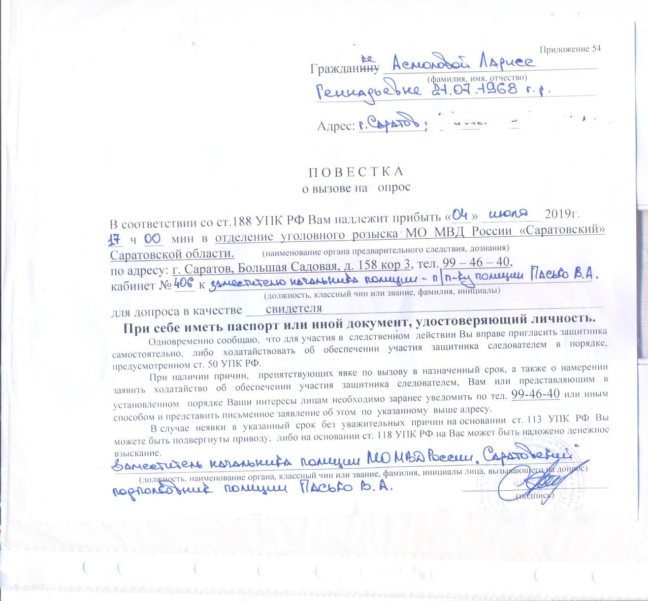 Просите выписывать повестку согласно ст. 188 УПК РФ и сразу её сфотографируйте, потом проверит основания её выписки прокуратура.